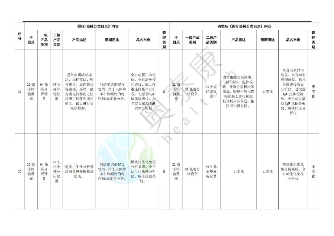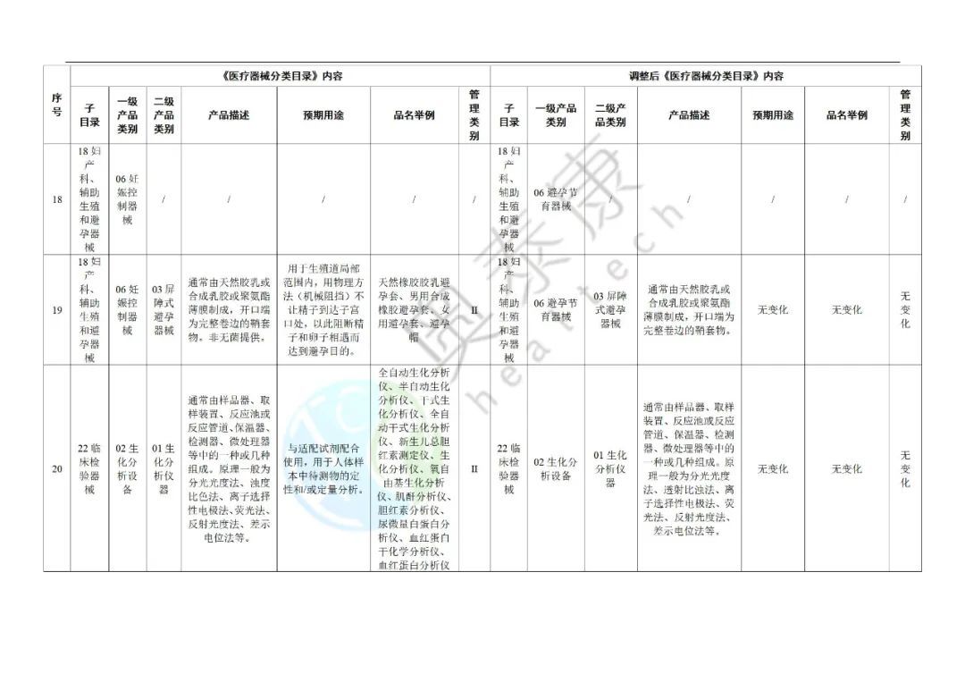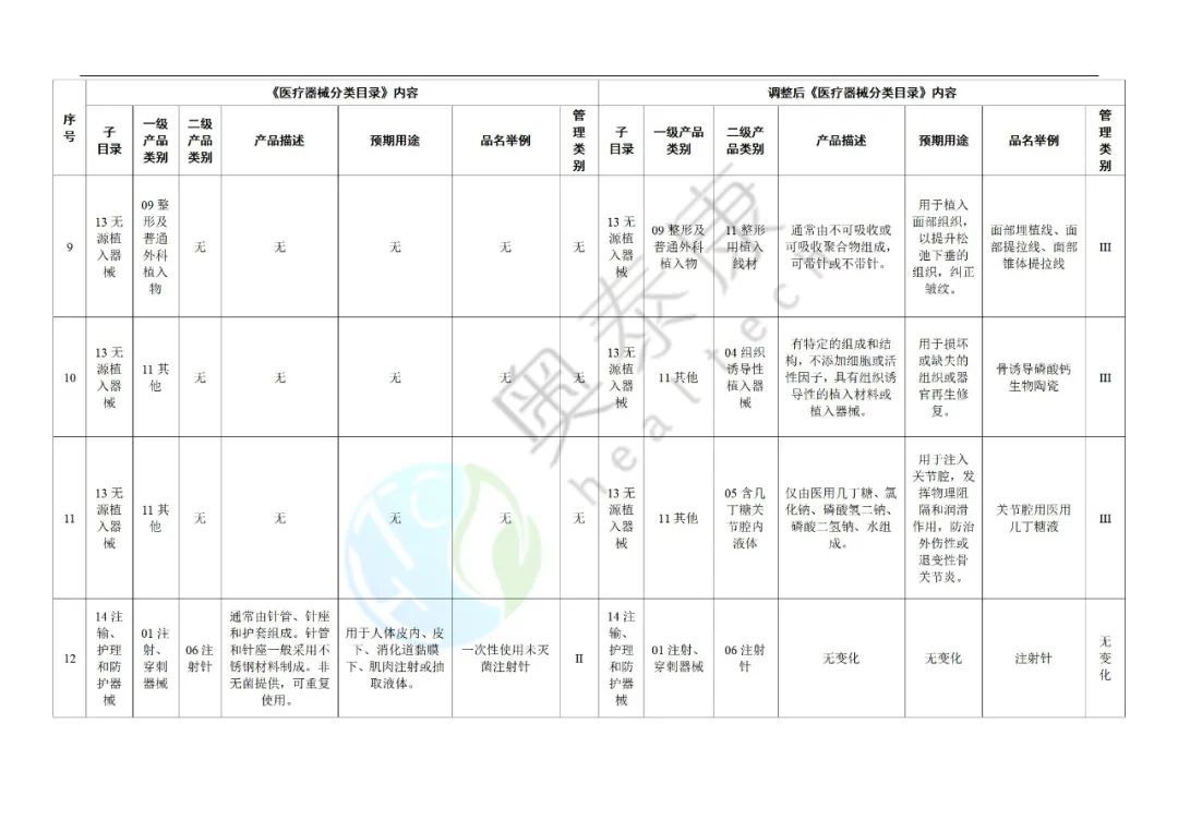 附件:《醫(yī)療器械分類目錄》部分內(nèi)容調(diào)整表