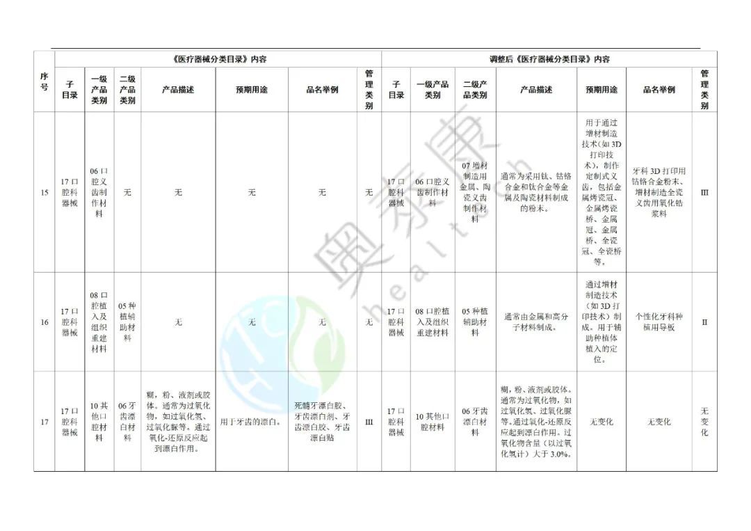 ?。ǘτ谡{(diào)整內(nèi)容的其他產(chǎn)品,自本公告發(fā)布之日起,藥品監(jiān)督管理部門依據(jù)《醫(yī)療器械注冊與備案管理辦法》《關(guān)于公布醫(yī)療器械注冊申報資料要求和批準(zhǔn)證明文件格式的公告》等,按照調(diào)整后的類別受理醫(yī)療器械注冊申請。