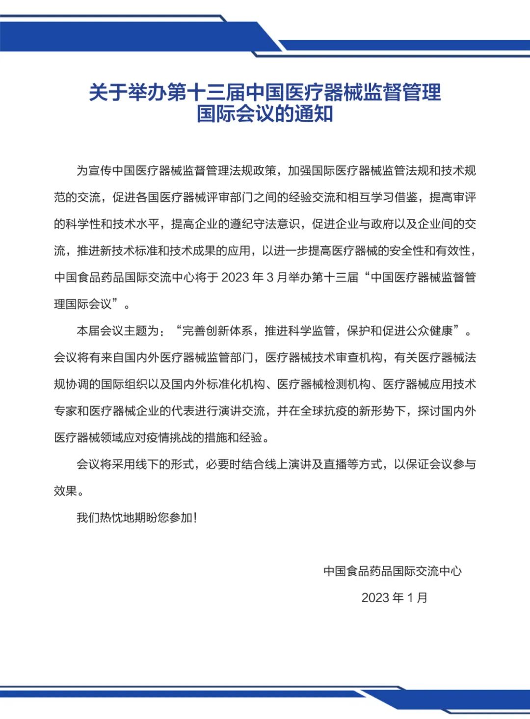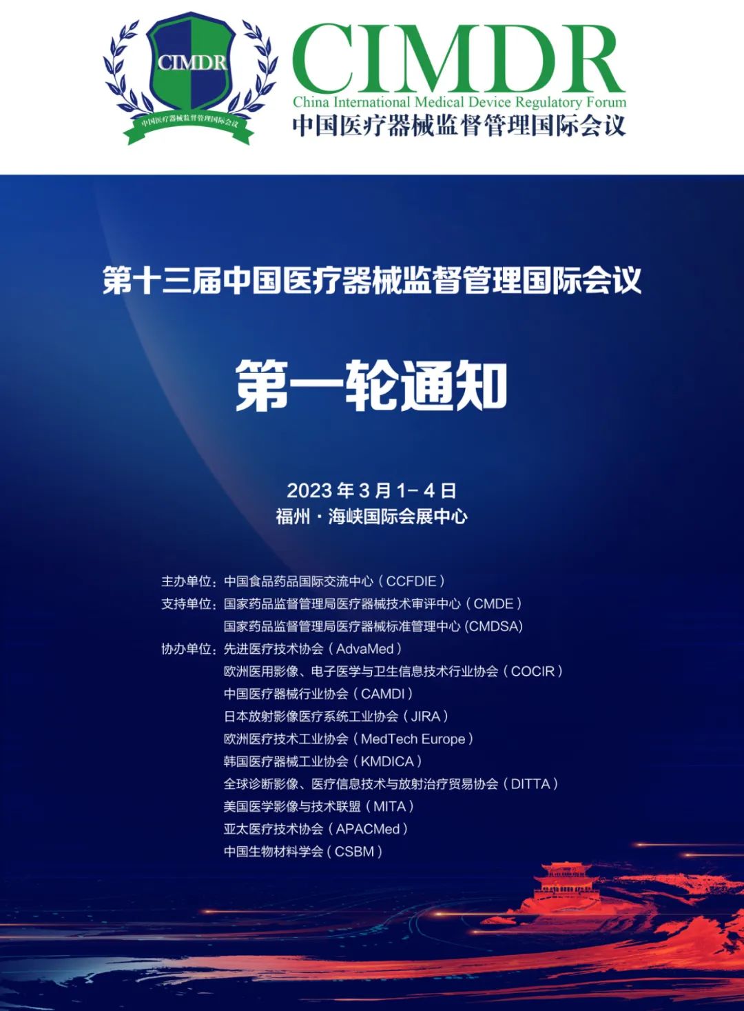 2023年3月1日-4日,第十三屆中國醫(yī)療器械監(jiān)督管理國際會(huì)議(CIMDR)將于福建省福州市海峽國際會(huì)展中心隆重舉行,奧泰康作為參展商和演講嘉賓參加會(huì)議,誠摯邀請(qǐng)各位醫(yī)療同仁蒞臨展位。