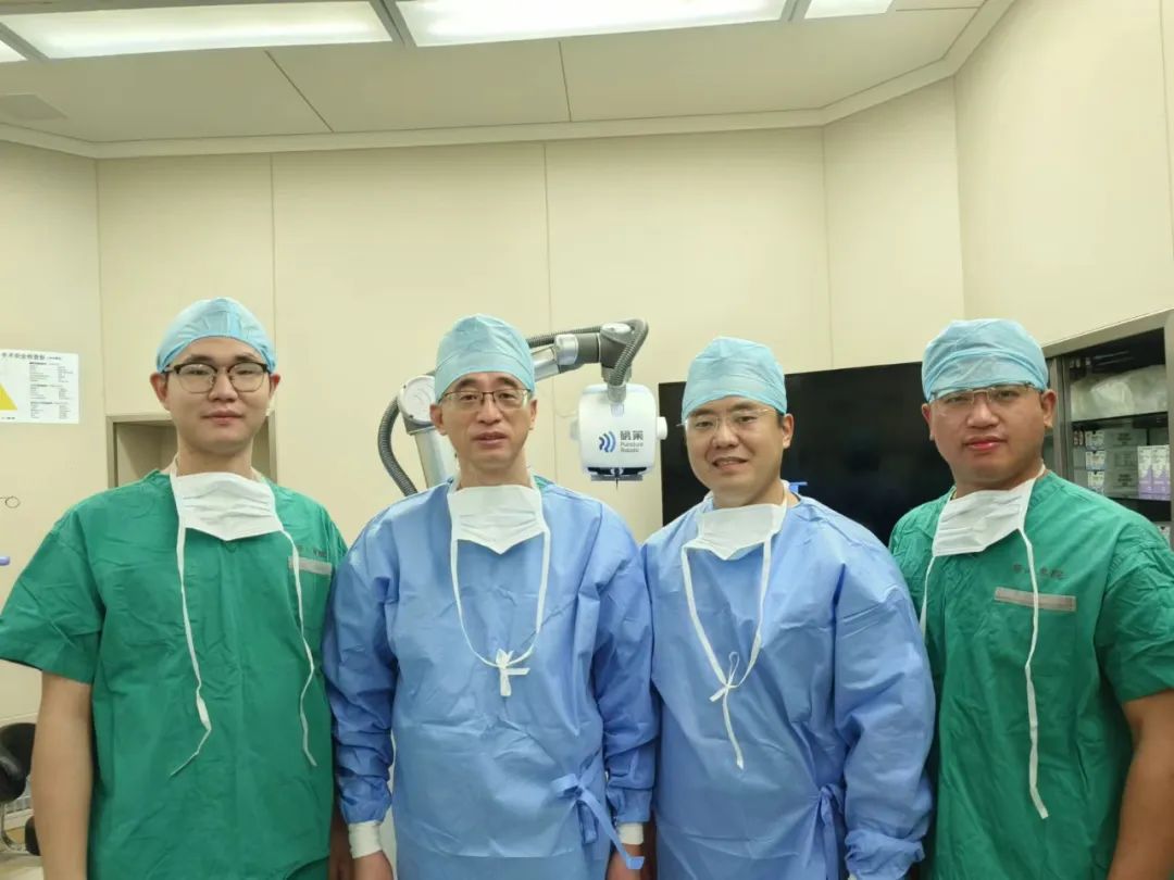 ▲華山醫(yī)院吳文育主任(左二)與醫(yī)護團隊手術(shù)成功后留影