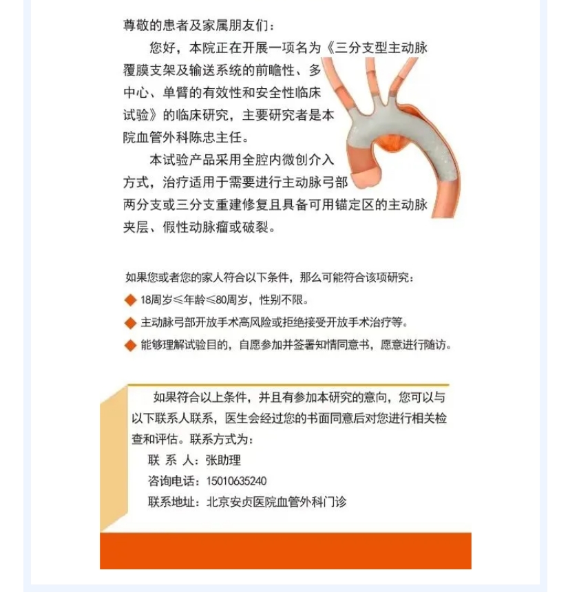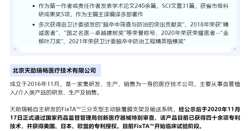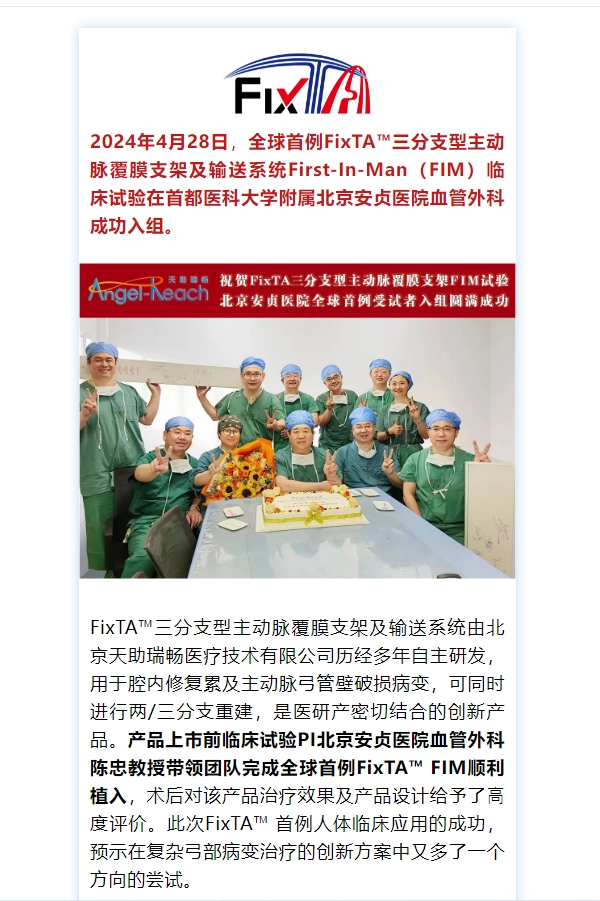 MA里程碑 全球首例北京天助瑞暢FixTA?三分支型主動脈覆膜支架及輸送系統(tǒng)FIM臨床試驗(yàn)成功入組編者薦語: