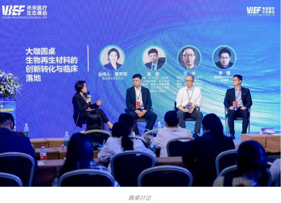 隨后,科技部“973計劃”與重點項目首席科學(xué)家、長江學(xué)者特聘教授、國家杰出青年基金獲得者、空軍軍醫(yī)大學(xué)組織工程研發(fā)中心創(chuàng)始人金巖教授;四川大學(xué)國家生物醫(yī)學(xué)材料工程技術(shù)研究中心教授、國際生物材料科學(xué)與工程聯(lián)合會Fellow艾華教授;奧泰康SFM事業(yè)部總經(jīng)理李強先生以及道遠(yuǎn)資本投資總監(jiān)姜芳芳共同圍繞《生物再生材料的創(chuàng)新轉(zhuǎn)化與臨床落地》這一主題進(jìn)行了分享與探討。