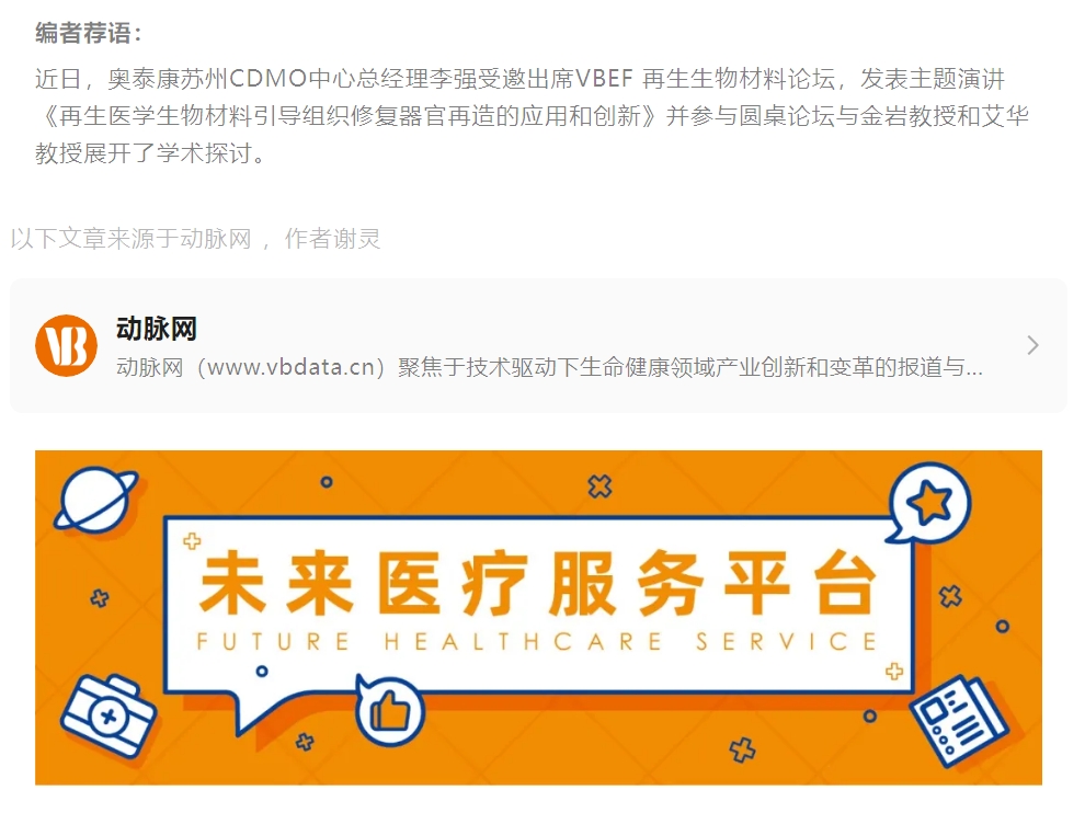 2024年5月7日至10日,第八屆未來醫(yī)療生態(tài)展會以“新青年”為主題,由VB100、動脈網(wǎng)、蛋殼研究院、動脈橙主辦,天津經(jīng)濟(jì)技術(shù)開發(fā)區(qū)(TEDA)聯(lián)合主辦,與天津濱海中關(guān)村科技園管委會、北塘灣數(shù)字經(jīng)濟(jì)產(chǎn)業(yè)園戰(zhàn)略合作,于北京·北人亦創(chuàng)國際會展中心正式召開。作為此次論壇備受關(guān)注的熱門論壇之一,生物再生材料論壇于5月10日下午圓滿落幕。