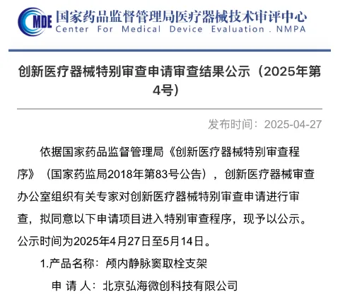 近日,我司自主研發(fā)的腦靜脈介入治療產(chǎn)品顱內(nèi)靜脈竇取栓支架,已正式進(jìn)入國(guó)家創(chuàng)新醫(yī)療器械特別審批程序(綠色通道)! 這是對(duì)我們團(tuán)隊(duì)技術(shù)實(shí)力與臨床價(jià)值的權(quán)威認(rèn)可,也標(biāo)志著中國(guó)腦靜脈疾病治療邁入全新階段。